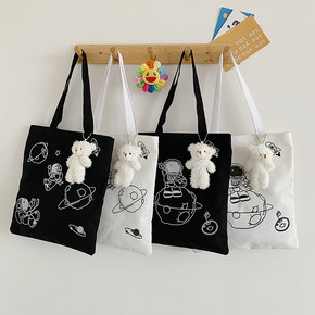 帆布包女小众日系原宿暗黑风斜挎包韩版百搭学生上课大...