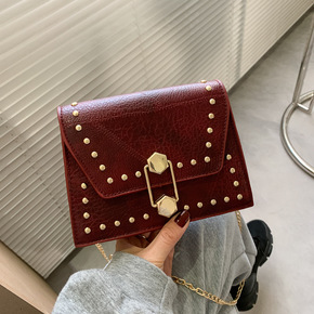 小包包女2021洋气少女新款时尚斜挎包铆钉休闲潮流...