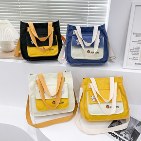 2020新款学院风学生帆布上课手提袋男女撞色单肩包...