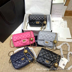 真皮女包批发2021新款小香风包方胖子菱格链条金球...