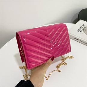 2021秋季新款女包时尚漆面PU纯色单肩小方包韩版...