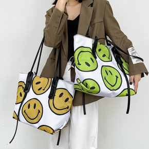 韩国东大门新款时尚可爱笑脸帆布女包印花帆布手提单肩...