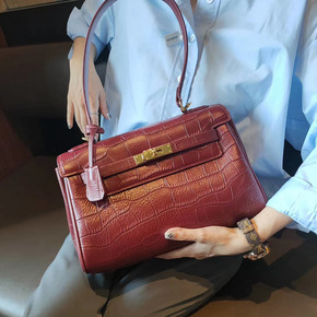 2021秋冬新款真皮女包鳄鱼纹锁扣凯莉包单肩斜挎头...