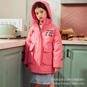 平台直播间品牌童装尾货 宽松连帽女童韩版羽绒服 巴...