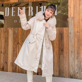 西树影黛大貉子毛领配内胆兔绒可脱卸派克羽绒服品牌折...