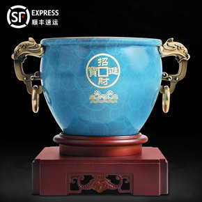 纯铜仿古拉丝铜缸烟灰缸聚宝盆五谷丰登年年有余日进斗...