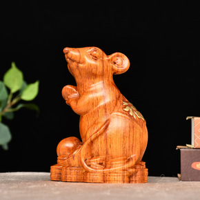 黑檀木雕老鼠摆件十二生肖风水木质鼠家居装饰红木工艺...