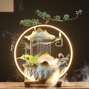 新中式创意流水喷泉招财风水循环加湿器摆件办公室桌面...