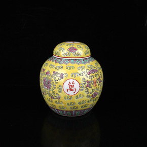 一件代发陶瓷工艺品仿古做旧粉彩黄万寿宝珠坛客厅书房...