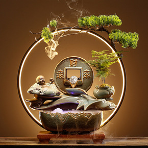 假山流水生财喷泉鱼池鱼缸客厅电视柜茶几装饰品摆件乔...