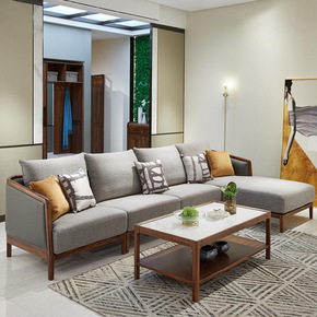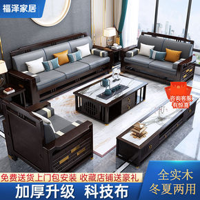 新中式实木沙发组合科技布胡桃木现代简约大小户型客厅...
