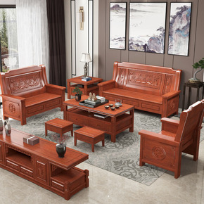 实木沙发组合新中式香樟木简约现代全木质客厅农村经济...