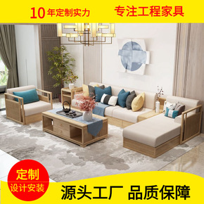 新中式实木沙发组合家用客厅禅意别墅酒店民宿茶楼会所...