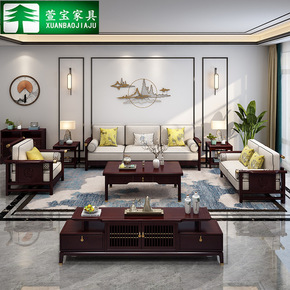 乌金木新中式全实木沙发组合现代轻奢风转角贵妃冬夏两...