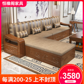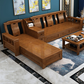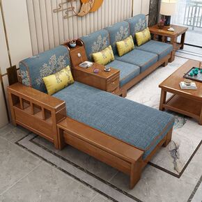 新中式实木沙发贵妃组合大款客厅轻奢风冬夏两用储物橡...