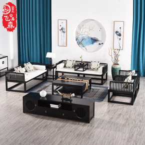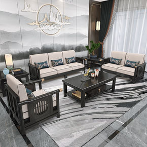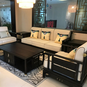 新中式实木沙发组合现代简约禅意轻奢冬夏两用样板房民...