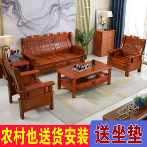 实木沙发客厅家用客厅家具全套农村小户头组合新中式三...