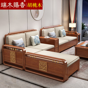 新中式实木沙发组合冬夏两用客厅现代简约小户型胡桃木...