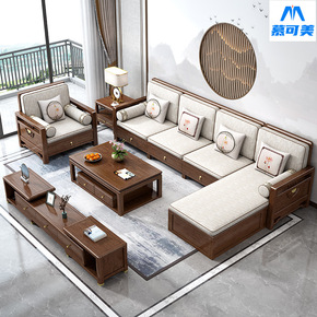 胡桃木全实木沙发客厅组合家具套装储物贵妃新中式沙发...
