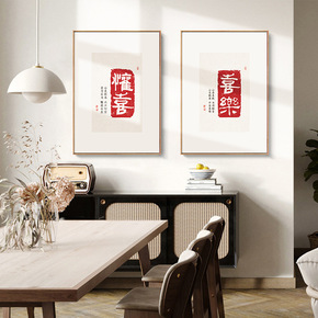 客厅玄关装饰画现代新中式民宿茶室壁画欢喜常乐字画如...