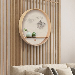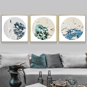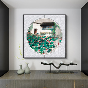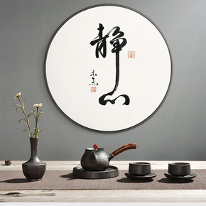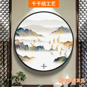 禅意挂画水墨山水画圆形正方形客厅挂画玄关酒店茶室新...