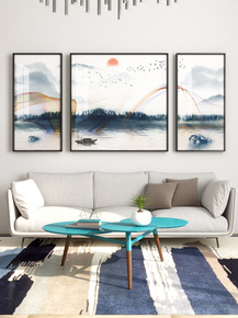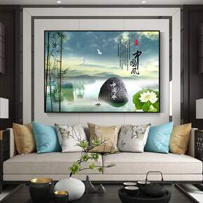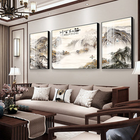 客厅装饰画贴纸办公室墙面山水画沙发背景墙壁贴画风景...