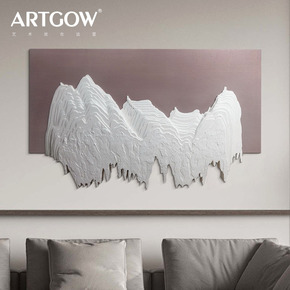 新中式砂岩手绘山水画客厅装饰画立体沙发背景浮雕墙壁...