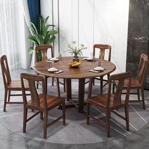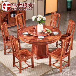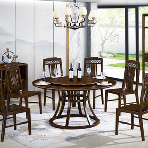 乌金木实木餐桌椅组合现代新中式圆形餐桌家用大小户型...