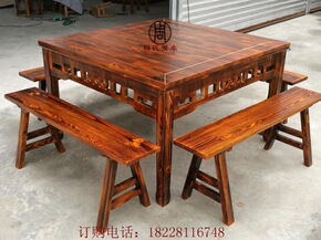 新中式八仙桌中式仿古实木条案传统农村家用碳化饭店餐...