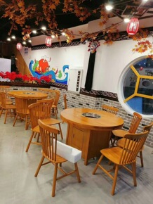 火锅餐桌定制酒店电动圆桌新中式带转盘大餐桌椅火锅组...
