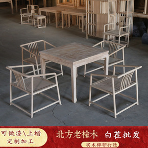 新中式仿古长方桌餐桌榆木餐椅小方桌现代家用餐饮组合...