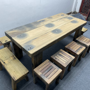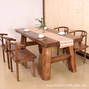 老船木实木餐桌饭馆别墅餐厅简约桌椅组组合新中式名宿...
