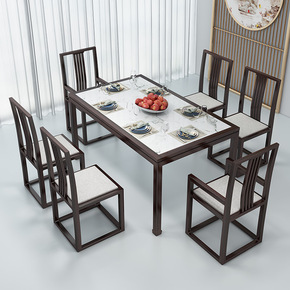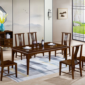 实木餐桌椅家用小户型长方形饭桌现代新中式乌金木实木...