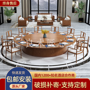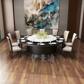酒店电动餐桌大圆桌转盘12人15人20人新中式家用...