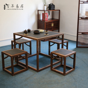黑胡桃茶桌实木方桌新中式八仙桌中式阳台牌桌禅意简约...