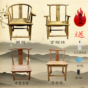 新中式老榆木实木椅子白茬家具官帽太师靠背圈椅白胚主...