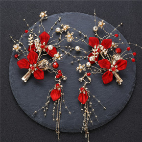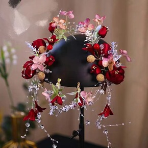 敬酒服新娘婚礼红色订婚头饰精美酒红结婚经典宫廷古风...