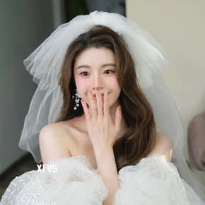 领证登记小头纱多层蓬蓬纱网红拍照道具森系新娘结婚旅...