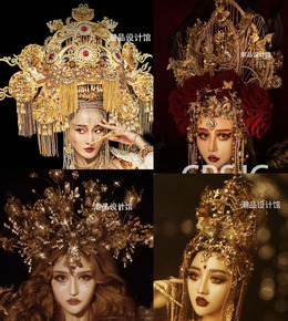 新款新娘结婚大气奢华步摇中式古代秀禾服金色凤冠秀禾...