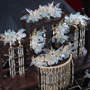 中式新娘头饰琉璃唯美后压秀禾服头饰2022新款流苏...
