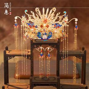 秀禾服头饰大气复古风皇冠步摇流苏发饰敬酒服新娘龙凤...