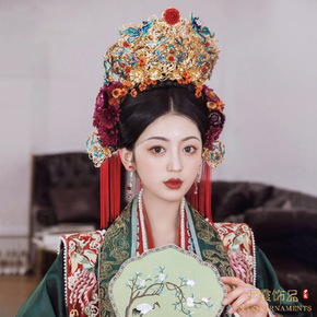 明制凤冠汉服中式婚礼新娘头饰新款秀禾服发饰红流苏步...