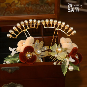 新中式新娘晨袍头饰婚礼结婚秀禾服发饰简约旗袍古风簪...