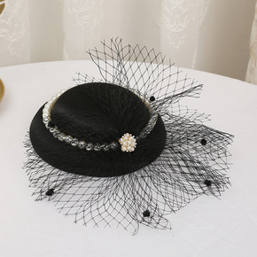 亚马逊新款夸张欧美风格发扣 新娘网纱蒙面头饰 配黑...