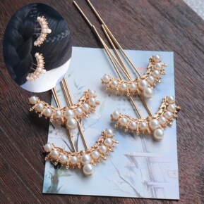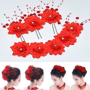 韩式花朵头饰套装结婚盘发饰品U型夹簪子插针新娘头饰...