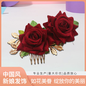 批发玫瑰花发簪滴胶真干花朵DIY汉服中国风新娘头饰...