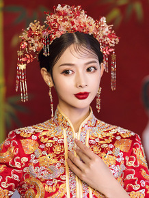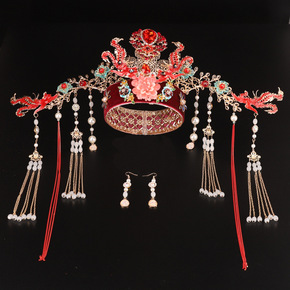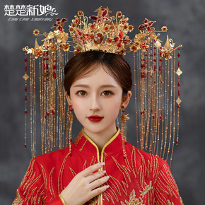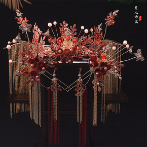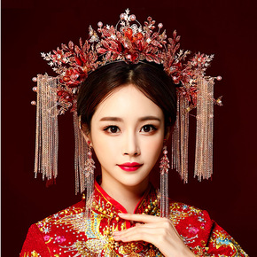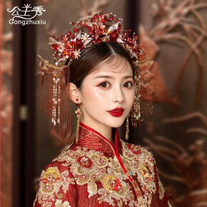 秀禾头饰2021新款中式大气红色新娘秀禾服结婚凤冠...