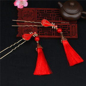 风大红色琵琶穗子流苏发钗民族风发饰古装旗袍头饰新娘...