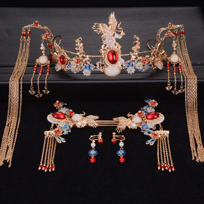 新娘中式秀禾服头饰套装古代宫廷流苏步摇大气凤冠霞披...