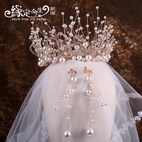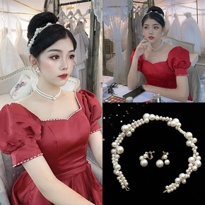 新娘结婚头饰2021日韩新款简约串珠发箍耳环婚纱礼...